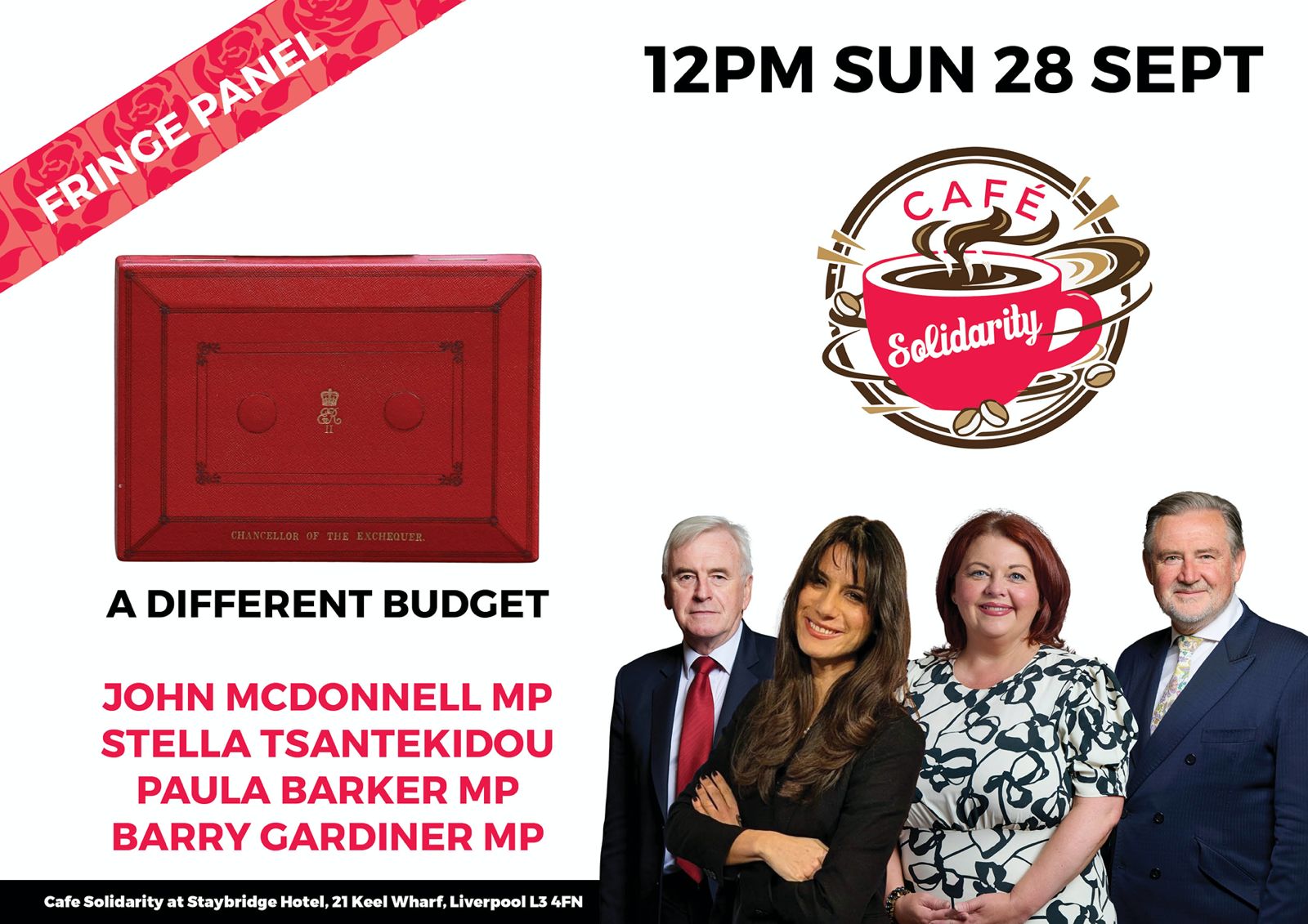 Drop in to the Solidarity Café at the Labour Party Conference Fringe this Saturday and Sunday between 12noon and 4pm for coffee & conversation.